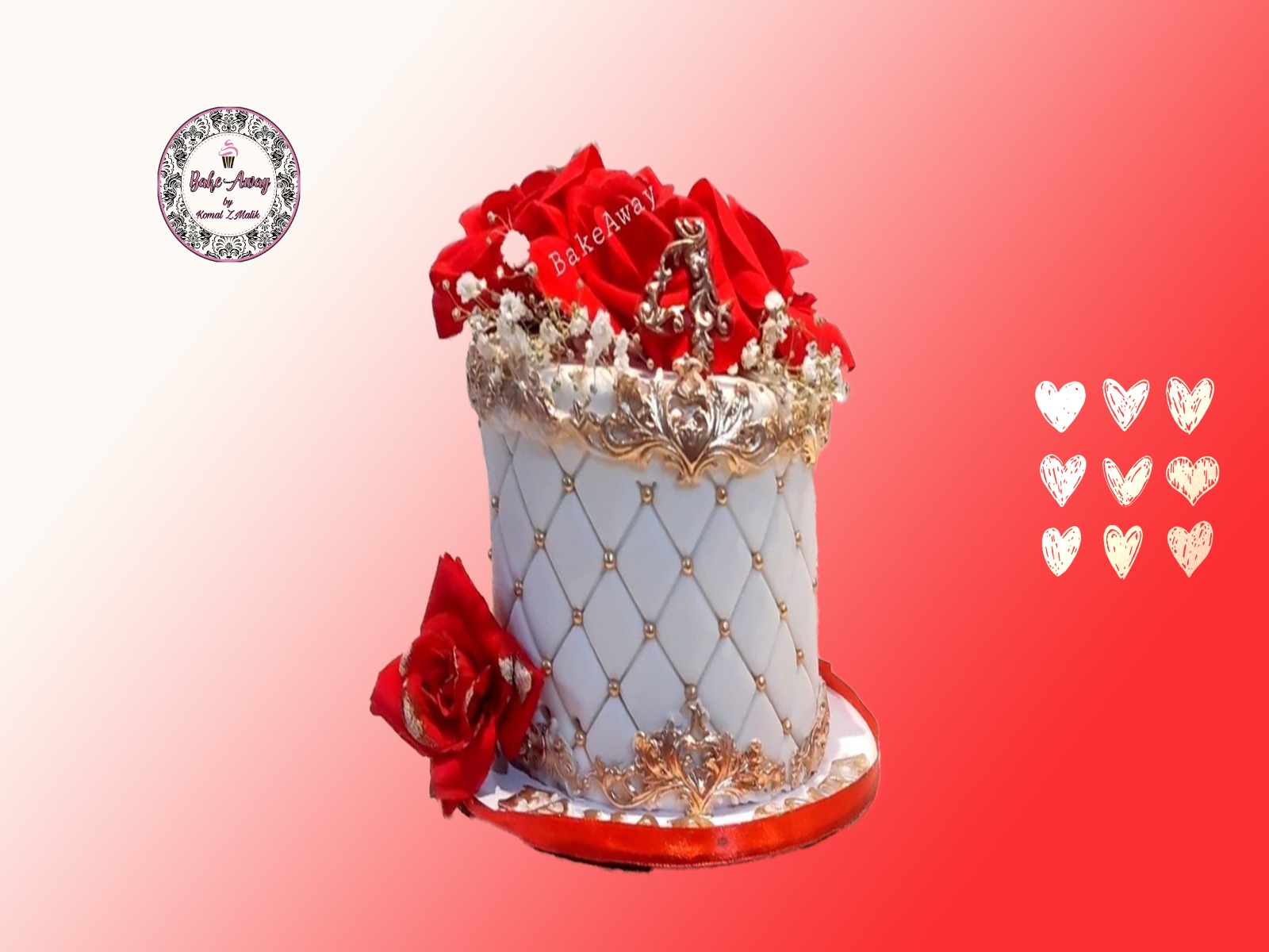 The most romantic cake, Vanilla Caramel Crunch flavor decorated with beatiful elements to make it a centre piece of your celebration.